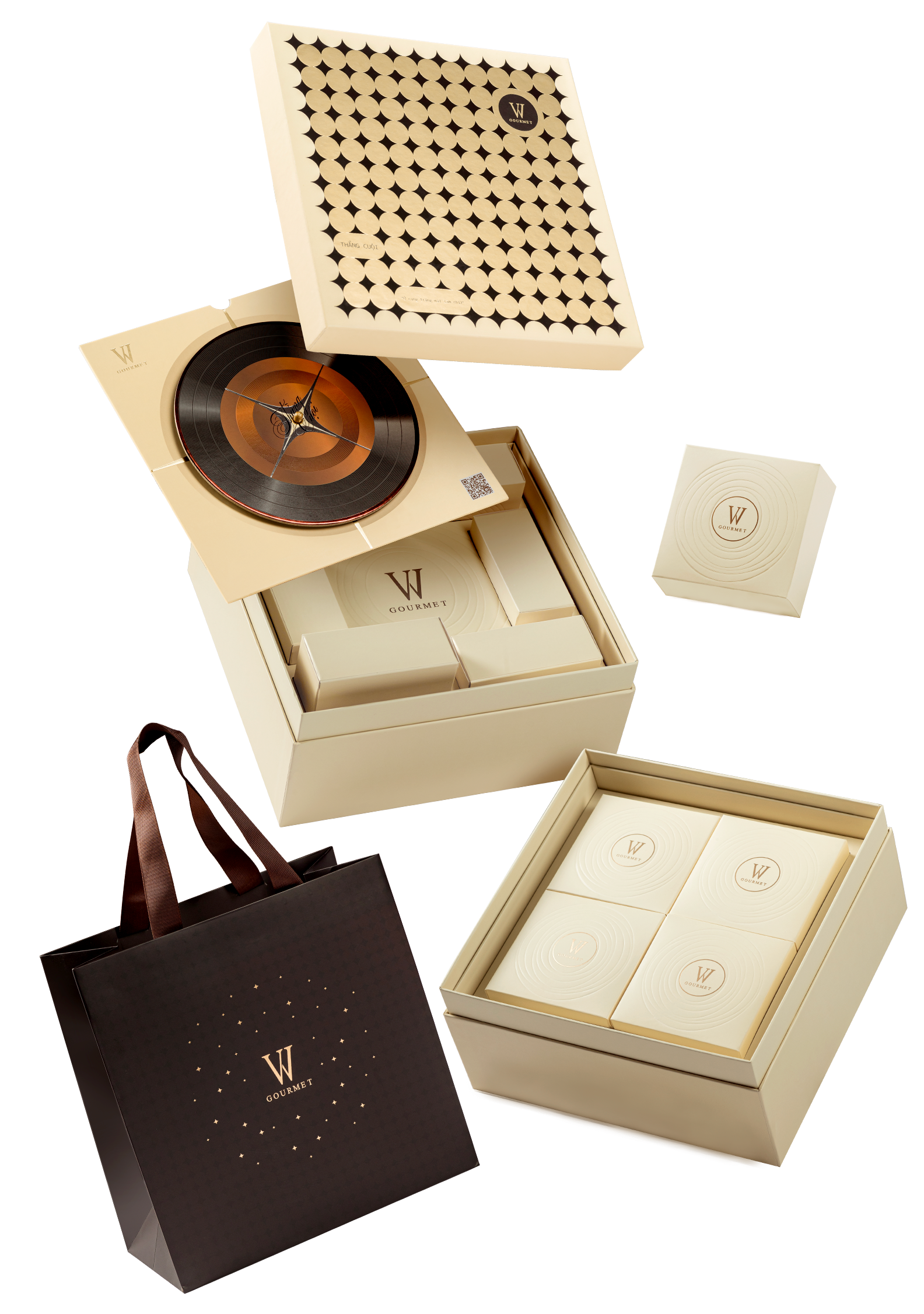 Tựa như bản giao hưởng của hoài niệm và tinh tế, Soulful Gift Set là sự cộng hưởng giữa nghệ thuật thiết kế và cảm xúc trao tặng. Từ gam màu sang trọng, chất liệu chọn lọc đến cấu trúc mô phỏng hộp nhạc đĩa than cổ điển với nút phát nhạc, từng chi tiết đều được chăm chút kỹ lưỡng. Bên trong là những chiếc bánh trung thu thượng hạng – nơi nghệ thuật thủ công hòa quyện cùng cảm hứng hiện đại, tạo nên món quà chứa đựng chiều sâu và sự kết nối. Không chỉ là quà tặng, đây là lời tri ân trân trọng gửi đến những mối quan hệ xứng đáng được nâng niu.